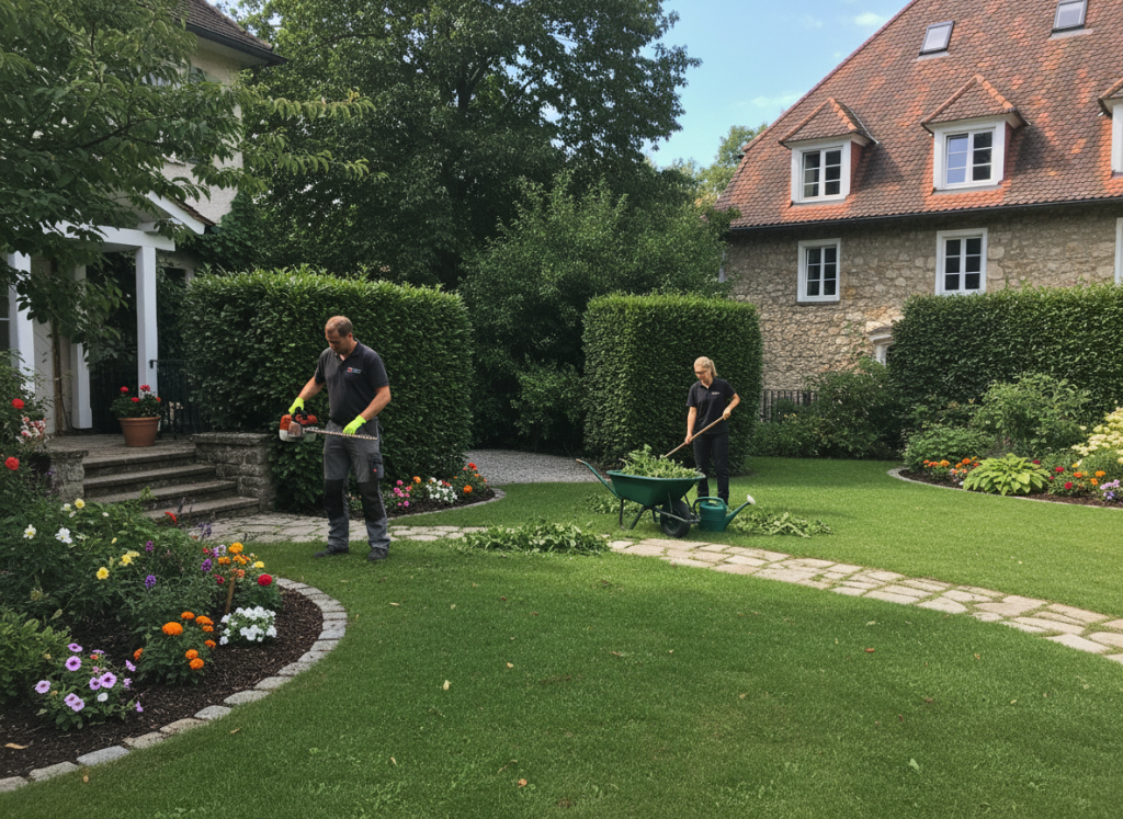 Dazu gehören Rasenmähen, Vertikutieren, Sähen und Düngen. Wir schneiden Hecken, Sträucher, Büsche und Bäume.